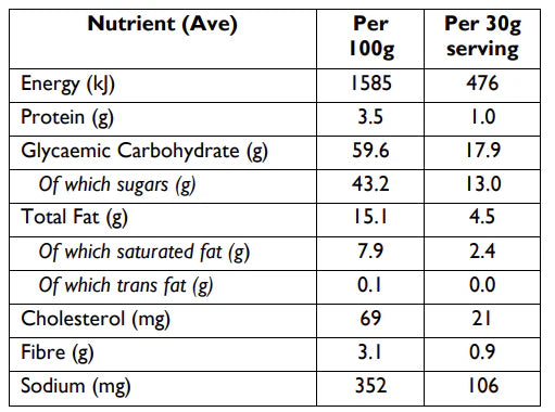 | Component | Per 100 g | Per Serving (30.0 g) |