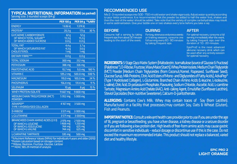 USN Epic Pro 2 Ultra Endurance Drink Light Orange