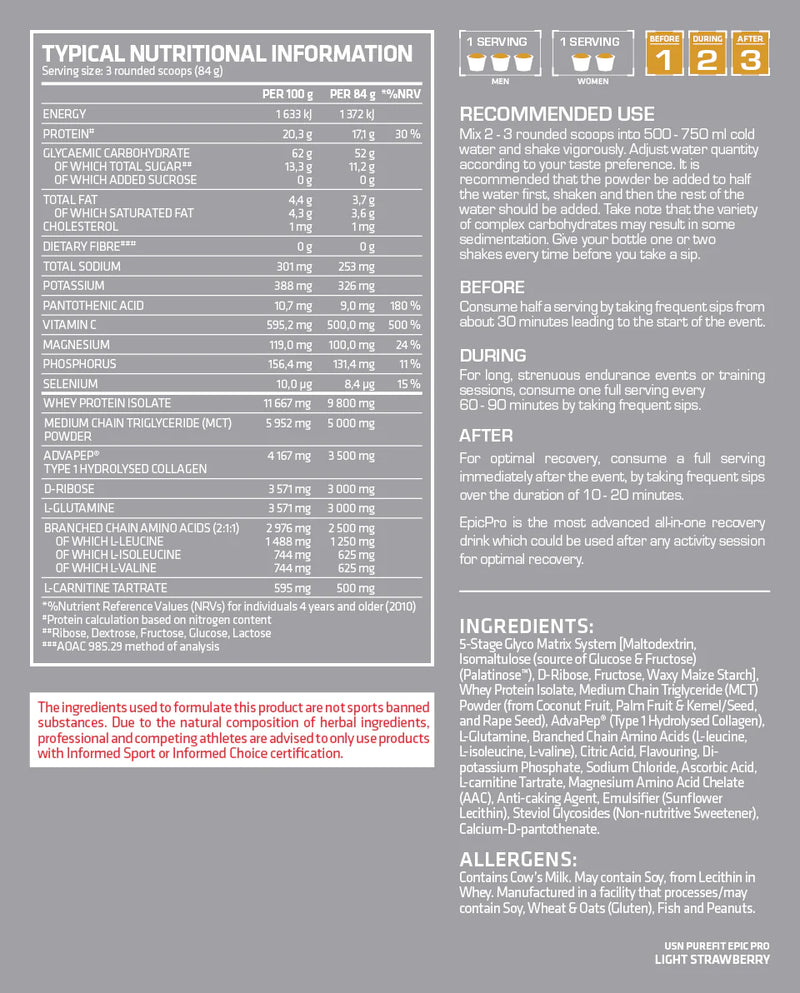 USN Epic Pro 2 Ultra Endurance Drink Light Strawberry / Single Serving