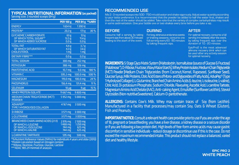 USN Epic Pro 2 Ultra Endurance Drink White Peach
