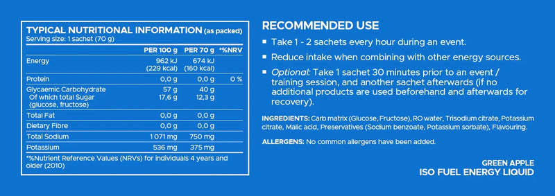 USN ISO FUEL 160 Energy Gel Green Apple / Single Serving