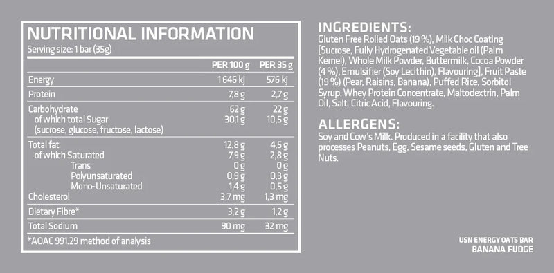 USN Oats Energy Bar Banana Fudge / Single Serving