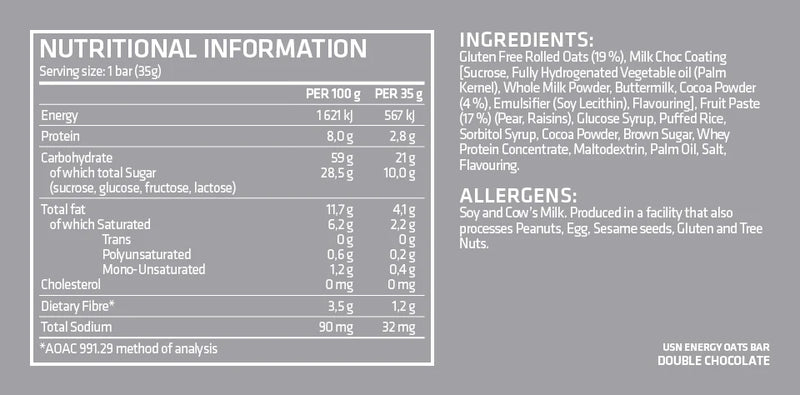 USN Oats Energy Bar Double Chocolate / Single Serving