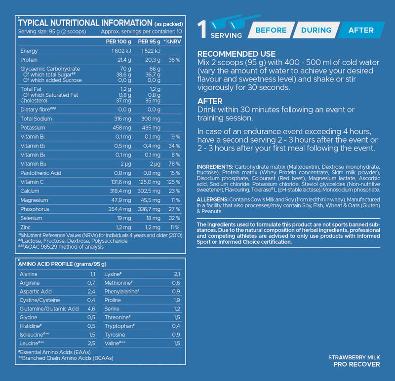 - Mix Pro Recover with suggested water amount and enjoy faster recovery.