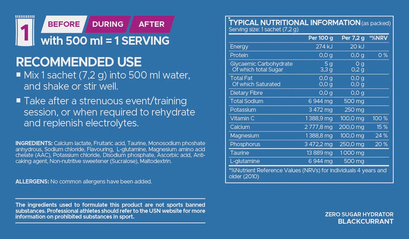 - Take after a strenuous event or training session, or when required to hydrate and replenish electrolytes.